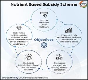 - The Nutrient-Based Subsidy (NBS) Scheme of the Ministry of Chemicals and Fertilizers aims to promote the balanced use of essential nutrients, such as nitrogen, phosphorus, potassium, and sulphur, thereby helping farmers avoid over-dependence on any single fertilizer and maintain soil health while improving productivity.